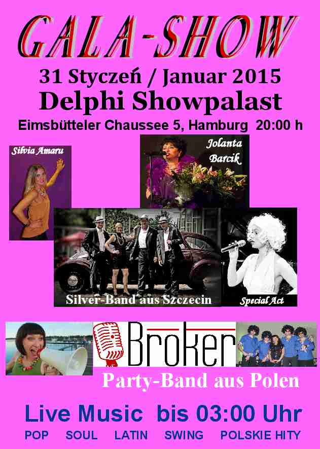 Alter Steinweg 10, 20459 Hamburg Concierto especial de la banda de Salsa y Latin Jazz PRIMERA DIVERSIÓN con 17 músicos en la tarima Músicos: Mayre Ramirez (voz, Cuba) y Giovanni Hernandez (voz, Colombia), trompetas: Hans Knudsen, Christian Keil and Lorenz Treudler, saxos: Carin Hammerbacher, Ulrike Lindemann, Frank Gertich y Antje Dahmen, además Jean-Philippe Tremblay (Canada) en el trombone. La sección rítmica se formó con Norbert Kujus (g), Oliver Curth (p), Frank Ullrich (b), Jörn Stapelfeldt (dr), Sylvia Franke (congas), Thomas Jegotka (perc) y Maximo Vallejos (perc, Chile). Baile después del Show con DJ Adan Rodriguez (Cuba) hasta medianoche!