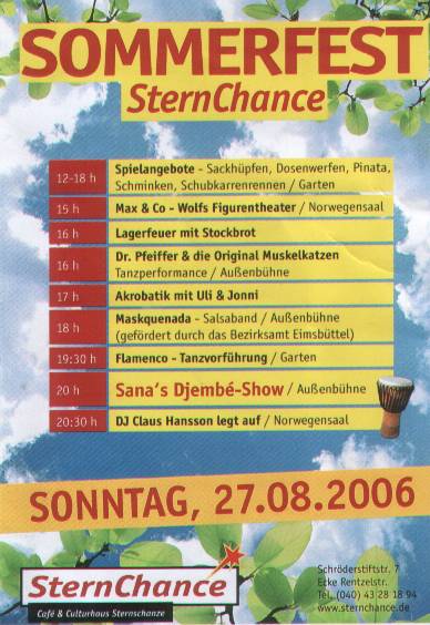 Sábado, 16.06.2007 | 9:30 p.m. | "Más que nada" (Salsa/Caribe-Big Band) en la ALTONALE 9 , Bühne der Kulturen (Bei der Reitbahn, Hamburgo-Ottensen) |