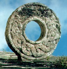 En el campo de la pelota los deportistas tenian que pasar la pelota por este anillo (con una altura de 5 metros) con ayuda de la cadera, del trasero, de las rodillas o de los codos. Los perdedores eran sacrificados para el sol! |