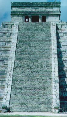 El Castillo, la Pirámide del Kukulkán y una figurilla en el interior de la pirámide. |
