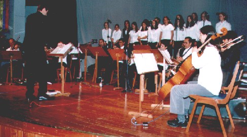 La Orquesta y ei Coro del Colegio Andino tocaron las 'Variaciones sobre el tema de Alemania' del compositor berlinense de Jazz - Bardo Henning. | ||||||||||||||||||||||||||||||||||