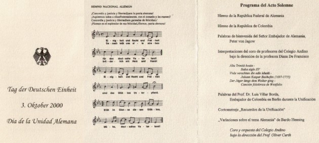 Celebración de la Embajada de Alemania del Día de la Unidad Alemana el 3 de octubre de 2000 en el Colegio Andino |