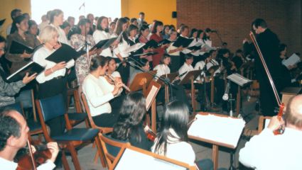 Los coros del bachillerato, de los profesores y de la congregation San Mateo presentaron una version orchestral de la "Misa Rotna" por el compositor danés Bent Peder Holbrecht. | ||||||||||||||||||||||||||||||||||||||||||||