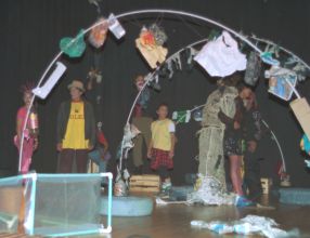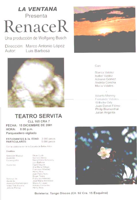 Doce seres humanos se encuentran dentro de un montón de basura e inmundicias. Nos enteramos de sus vidas fracasadas, mientras buscan desesperadamente la llave para salir de esa montana de basura gigantesca. Hacen alianzas y grupos donde se reflejan conflictos mortales. Al final, entienden que la llave para la salida está en su corazón y prefieren quedarse en este lugar. * * * En el proyecto social de teatro "Renacer" se encuentra gente de origen social muy distinto: Unos producen la basura con la cual los otros se ganan la vida. Alumnos del Colegio Andino - uno de los más exclusivos colegios de Bogotá - trabajan juntos en una producción con recicladores - gente que se anticipa a la llegada de los camiones municipales recolectores de basura y que se lleva en carretillas el material reciclable (papel, cartón, vidrios, metal) que encuentra, para vendérselo a los mayoristas por un punado de pesos. * * * En este trabajo en conjunto se demostró que los participantes no son "todos iguales", como se pretende en muchos proyectos sociales. Los alumnos, por ejemplo, para la participación en los ensayos, únicamente dedican su tiempo libre, los recicladores, sin embargo, pierden una parte de sus ingresos del día! Eso puede generar conflictos de vez en cuando. Para muchos participantes es la primera vez que se encuentran en un escenario, por eso, después del estreno, todos están orgullosos de la presentación tan exitosa. |