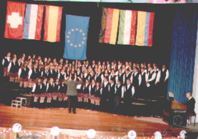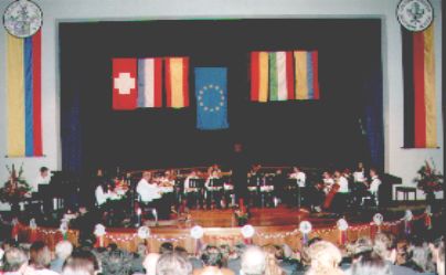 La Semana cultural de los colegios bilinguales europeos en Bogotá en febrero 2003: Las Orquesta del Bachillerato tocó un arreglo de los cinco himnos de los paises que participaron: Suiza, Francia, Espana, Alemania y Italia |